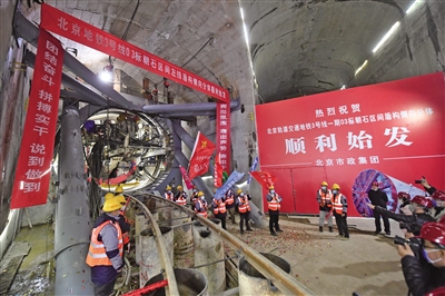 12月14日,朝阳公园南门外地铁建设工地,地铁3号线正式开始向东挖掘,预计春节前到达石佛营站,届时将实现朝阳公园站至石佛营站的左线洞通。一台重达480吨的盾构机,在地下30米采用长距离侧向平移、分体始发技术,这在全国尚属首次。目前在建的3号线一期工程,西起东城区东四十条站,东至朝阳区东风站,一共10座车站,全长15.6公里。新京报记者 王贵彬 裴剑飞 摄影报道