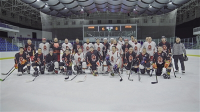 头盔掩盖了花白的头发和汗水,这仍旧是一场速度与对抗的较量。上世纪七十年代在什刹海体校冰球班的那帮孩子,已经成了年过六十的北京大爷。