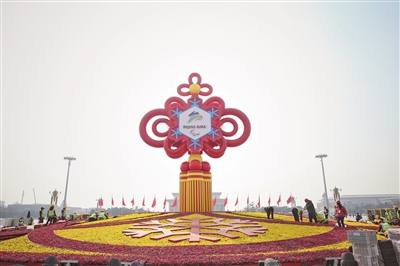 新闻报道长安街沿线花坛换上耐寒鲜花