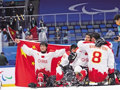 北京冬残奥会前,中国轮椅冰壶队是中国体育代表团唯一的冬残奥会金牌队伍,而中国残奥冰球队则是首次参加冬残奥会。这两支冰上项目队伍都交出了亮丽答卷,轮椅冰壶队开局两连败后,豪取10连胜,成功卫冕;残奥冰球队在小组赛全胜,晋级4强,并最终收获铜牌。