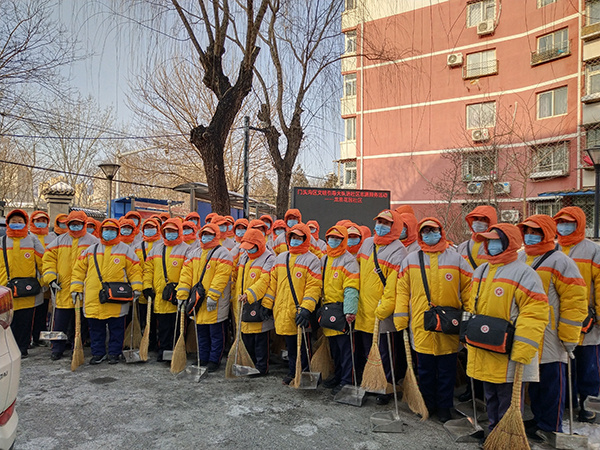门头沟公共文明引导员开展清理积雪志愿服务