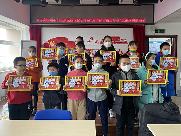 其他社区新时代文明实践站也组织了各具特色的冬奥主题活动,如石门营四区为未成年人开办了“激情冰雪 相约冬奥”纽扣画活动,教大家用纽扣粘贴制作心仪的“冰墩墩”“雪容融”,参加活动的10余位小同学对自己的作品爱不释手,让冰雪情结在未成年人心里扎根发芽。
