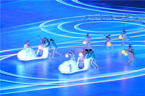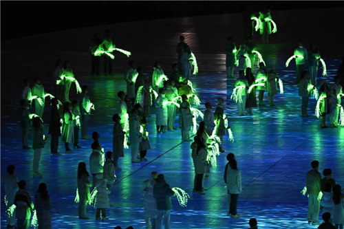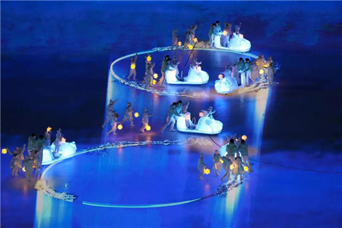 从开场点亮“冬梦”会徽,运动员入场前浪漫童真的冰车表演,到火炬熄灭时《我和你》《雪花》等歌曲的“时空穿越”,再到尾声所有演员汇聚携手“向未来”......