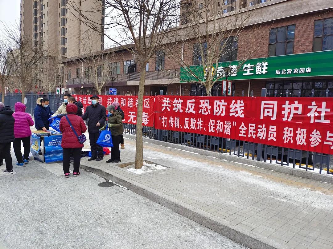 近日,潞城镇平安建设办公室(综治)联合宣传部、胡各庄派出所等部门,到后北营家园三区门口,开展禁毒防毒、打击传销、违法群租房整治及全民反恐知识联合宣传活动,通过发放宣传品、讲解相关内容等行动,为居民营造一个安全有序、文明和谐的生活环境。