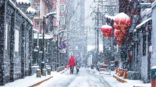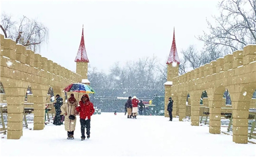白雪却嫌春色晚,故穿庭树作飞花。新春后,东城迎来了第一场雪。