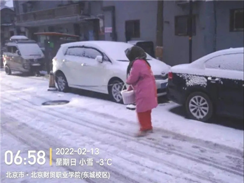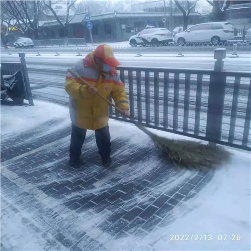 朝阳门街道志愿者重点对单元楼门前、社区内步道等易积雪部位进行清扫,及时撒上融雪剂,避免路面结冰。他们走上街头,挥动扫把、铁锹,铲雪破冰,为社区居民平安出行护航。