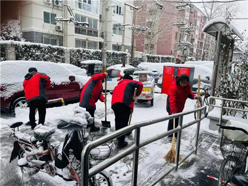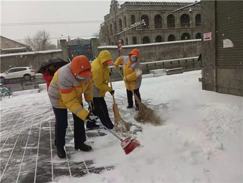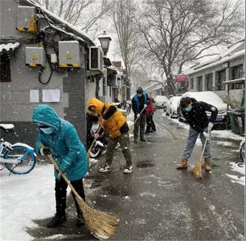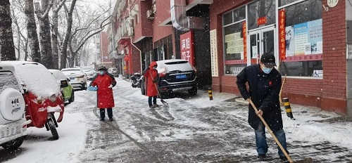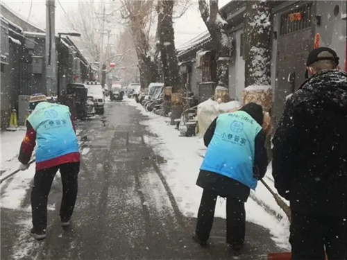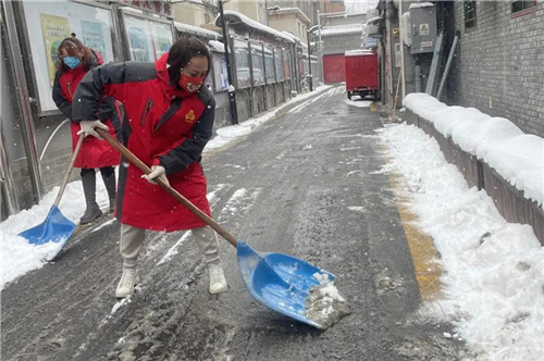 东花市街道志愿者,加入街道扫雪队伍,参与扫雪除冰志愿服务活动,确保辖区内无积雪现象。
