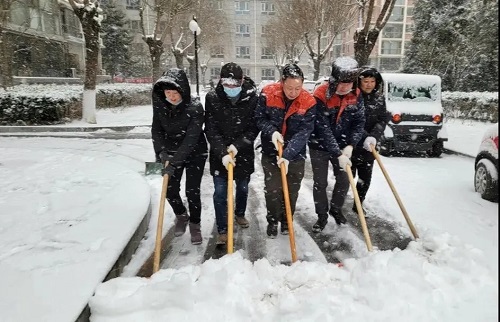有的志愿者负责铲冰,有的负责扫除积雪,大家分工合作,共同为社区奉献自己的力量。