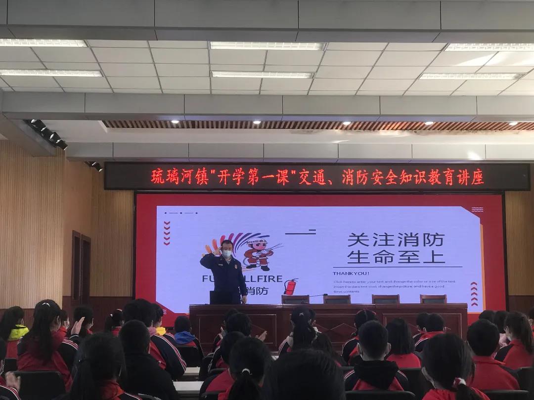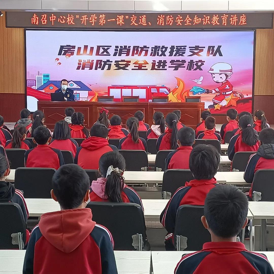 为不断提高中小学生守法规知礼让、安全文明出行和防火安全意识,2月21日,房山区琉璃河镇平安办联合镇教委邀请区交通支队王文武警官、区消防支队卢同玺警官到琉璃河镇南召中心小学开展“开学第一课”交通、消防安全知识教育讲座。