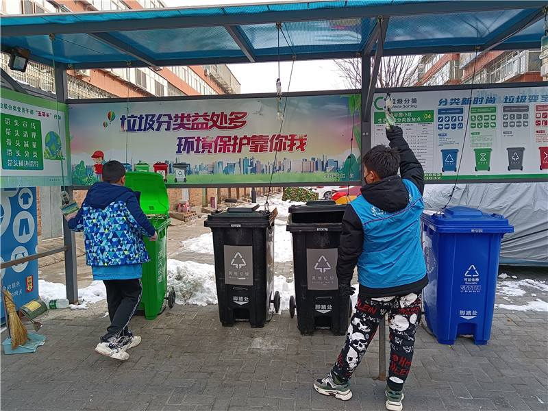 活动开始后,未成年人对所有楼栋一层楼道内的电动车、自行车及杂物进行清理,并清扫地面上的垃圾,为辖区居民营造了一个舒适、安全、整洁的居住环境。接下来,大家在垃圾站点前进行桶前值守,查看桶内垃圾投放情况,对前来投放垃圾的居民进行现场指导和垃圾分类知识宣传,居民们都竖起大拇指对志愿者们认真负责的态度点赞。
