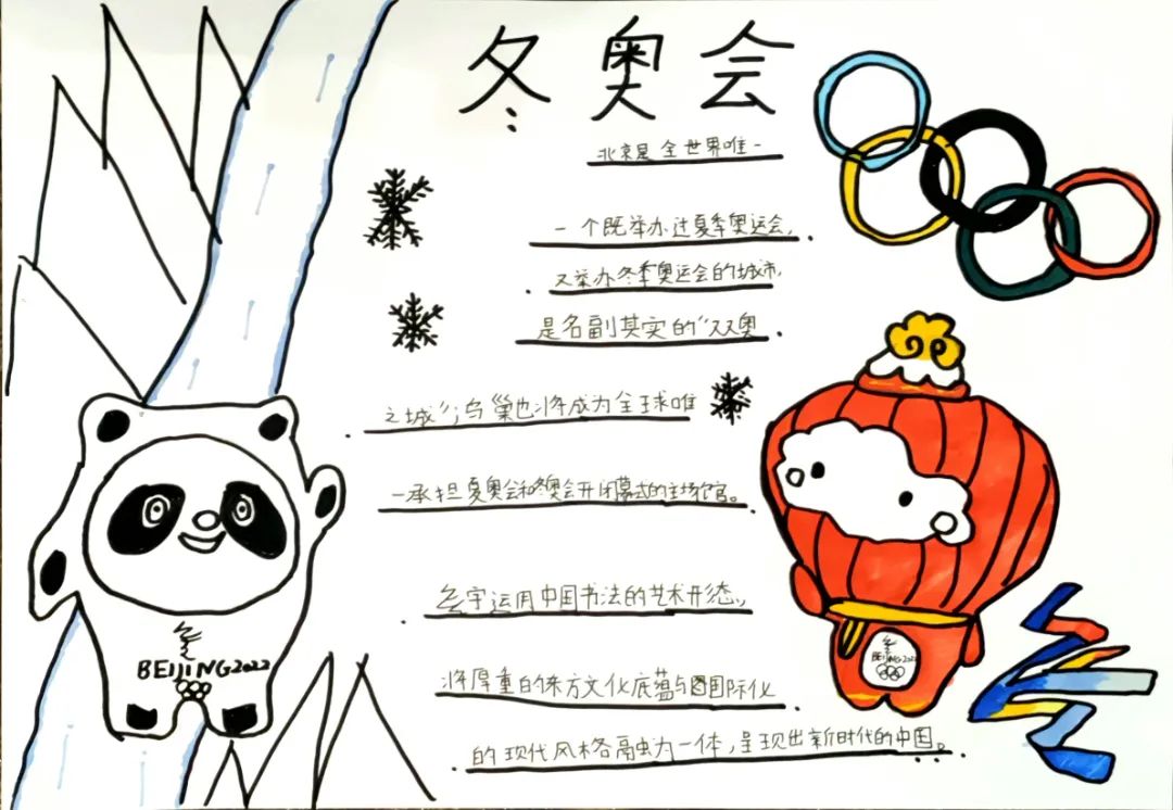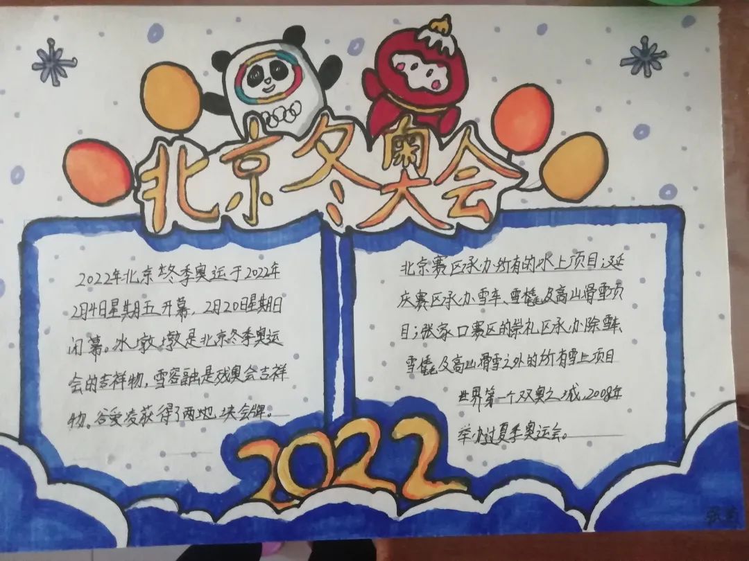 青年交流群活动一经发布,小志愿者们踊跃报名。他们年纪虽小,对冬奥会的认识却一点也不少,小可爱们用画笔描绘出对“冬奥会”的理解。一幅幅图画映入眼帘,有的画了可爱的冰墩墩,为冬奥加油,有的用手抄报形式为我们讲解了“双奥之城”、冬奥赛区等相关小知识,用青少年独特的方式助力冬奥。