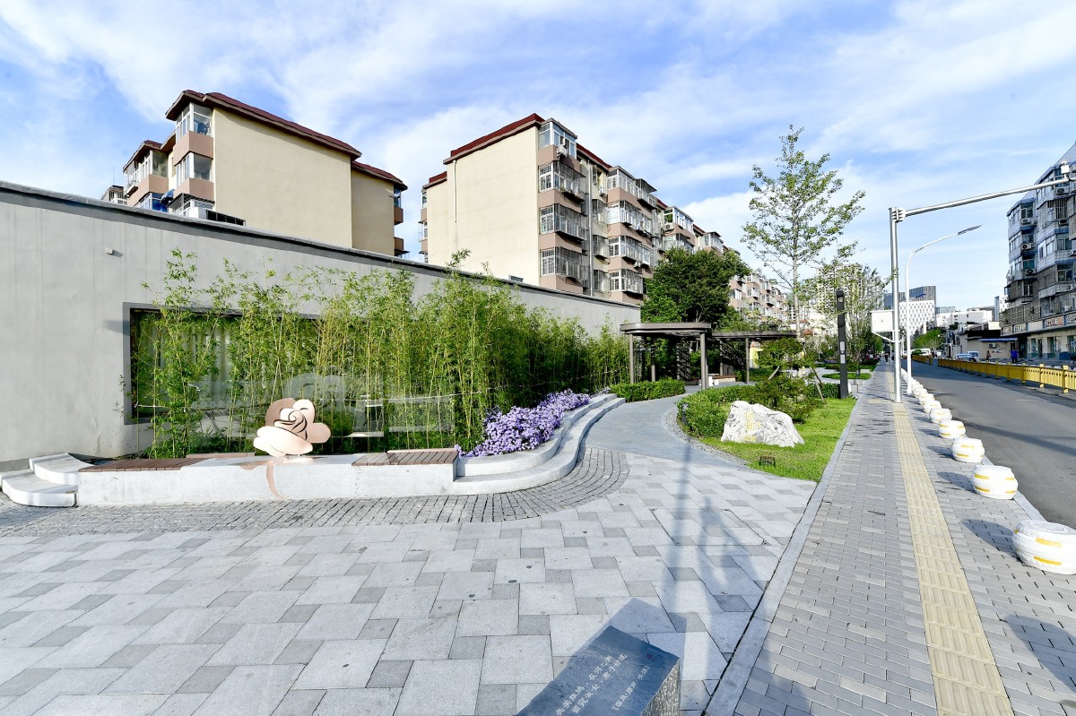 同样“进步”明显的还有司空分署街和西塔胡同的交叉路口处,一处拆违后新建的口袋花园已成为附近居民休闲的聚集地。初夏时节,紫藤努力爬上廊架,休闲座椅旁遍植月季。别看口袋花园只有120平方米左右,整体色调和设计风格却与“三庙一塔”景区相呼应,连廊架上的装饰,都选用了燃灯塔、大运河等通州标志性元素。