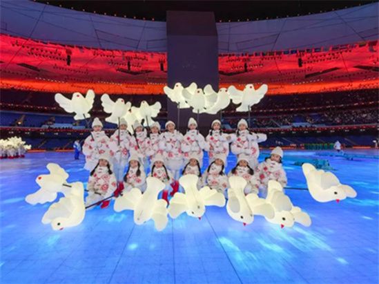 北京市朝阳区垂杨柳中心小学劲松分校金帆舞蹈团的40名学生与10名教师参与了北京冬奥会开幕式热场表演。