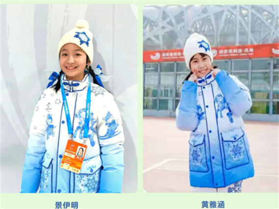北京市朝阳师范学校附属小学合唱团学生景伊明、黄雅涵参与北京冬奥会开幕式《雪花》节目。