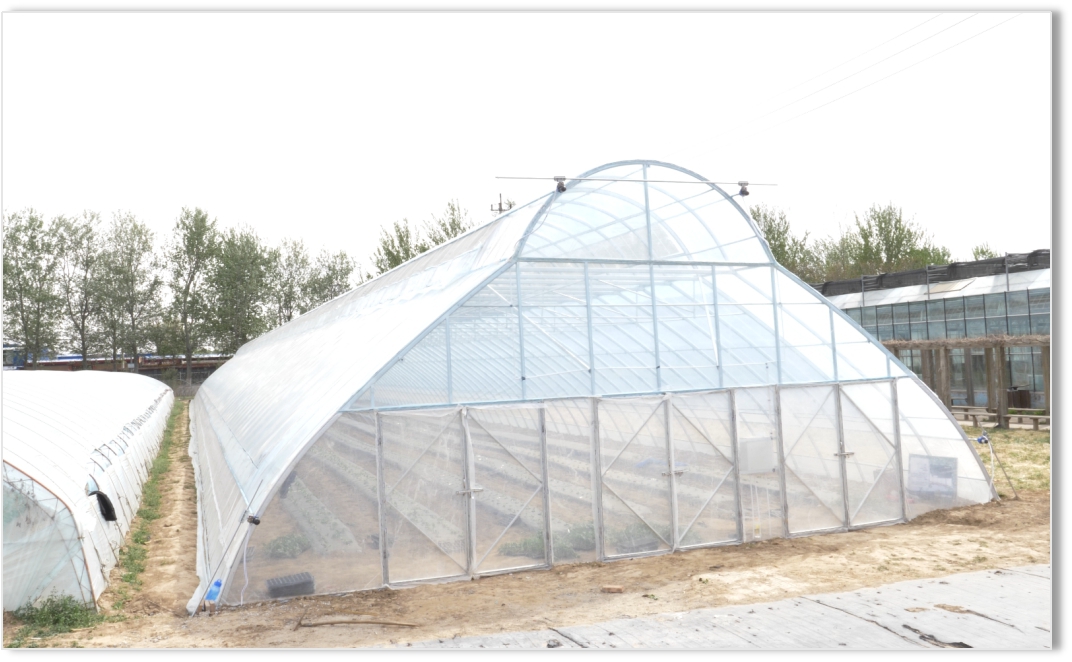 约5.5m,且棚内无立柱,为棚内开展机械化作业创造了条件,且新棚通过底部进风顶端排风的方式有效解决夏季棚内高温的问题。