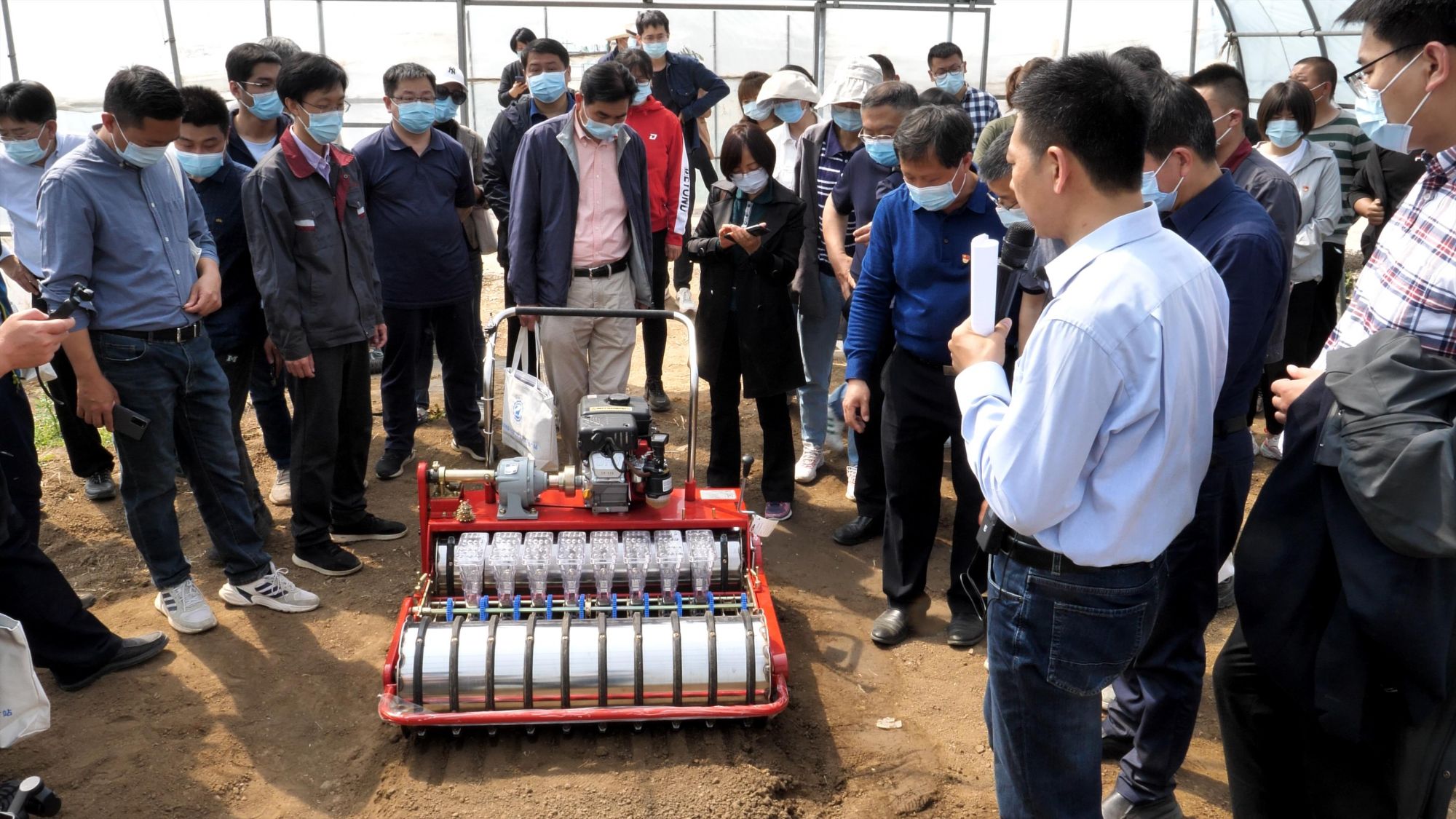 为落实北京市委市政府《关于做好2022年全面推进乡村振兴重点工作的实施方案》,推动我市设施蔬菜生产机械化发展,2022年4月20日,农业农村部农业机械化总站、北京市农业机械试验鉴定推广站联合昌平区农业机械化技术推广站,在北京市昌平区兴寿镇北京鑫城缘果品专业合作社,召开了“北京市设施蔬菜生产全程机械化技术装备现场演示会”。全国农业技术推广服务中心、农业农村部特色经济作物生产全程机械化专家指导组、北京市农业农村局种植业管理处、农机管理处领导及专家,昌平区相关部门领导及技术人员,设施蔬菜种植园区和种植户代表共50余人参加了活动。