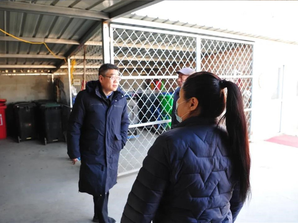 张福利同志指出路边有随意丢弃的生活垃圾,并督促建筑垃圾清理进度。邱刚同志检查垃圾分类、人员配备以及灭火器材配备等情况。