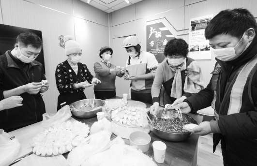 爱心单位、公益组织和社会团体与网约车司机们还一起包了饺子,茴香鸡蛋馅儿、白菜肉馅儿的饺子下了锅,大家吃得非常欢乐!