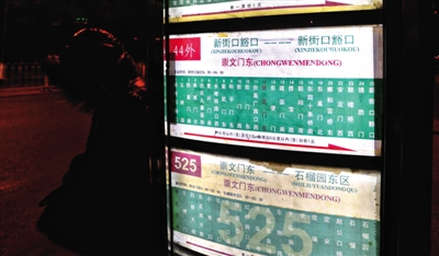 ◀昨日,公交崇文门东站,新换的44路外环公交站牌,标注起步价变为2元。本周日起,全市公交地铁都将实行新票价。新京报记者 王嘉宁 摄