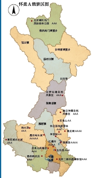 前往怀柔游玩的旅客,可在怀柔各旅游咨询服务中心、宾馆饭店免费获得手绘版“怀柔旅游一图通”。