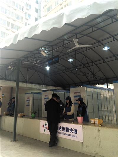 新京报讯 (记者黄颖 实习生李丹)学校与第三方机构合作,在校园中设立“快递超市”或“快递营业厅”等,将学生的大部分快件集中到这里统一收发。