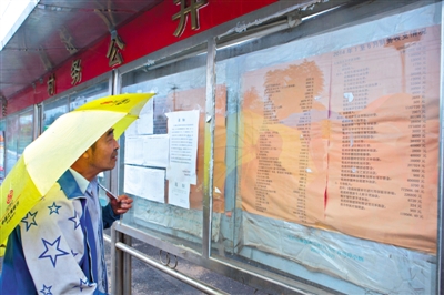 9月23日,顺义牛栏山镇蓝家营村村务公开栏张贴了各项财务收支情况,公示给村民查询。新京报记者 高玮 摄