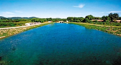 团城湖明渠 是中线干线北京段唯一的一段明渠,位于海淀区船营村西,长885米。团城湖原为密云水库和官厅水库的调水枢纽,将南水北调终点设在这里,三大水源汇集合一,便于联合调度,有利于城市供水安全稳定。
