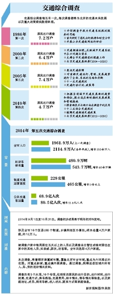 市交通委规划设计处处长陈金川表示,此前北京已经进行了四次全市交通综合调查,每次调查都为北京的交通发展及重大政策提供数据依据。与上次调查时相比,北京的城市交通形势发生了显著变化,既有数据已经无法真实反映北京交通发展的实际情况。此外,2014年恰逢启动筹备“十三五”规划,因此决定今年开展第五次北京城市交通综合调查。