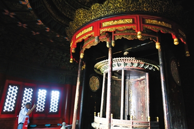 昨日,已修缮完成的乾元阁内显得“光彩照人”。