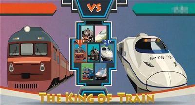 《高铁的前世今生》视频中,高铁列车和普通列车在游戏界面中进行PK。视频截图