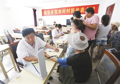 不一会的工夫,屋子里聚集了12名前来看病的村民,年龄最小的50岁,最长的82岁。因为都是老邻居,等待中大家有说有笑,比在医院看病多了一分轻松。