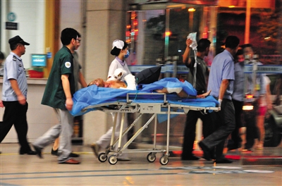新海医院接受9名伤员,其中3名因为伤势较重,转到广东省人民医院救治。8名伤员被送往421医院,其中3名出院。伤势最重的是一名约三十岁的男子,双下肢和背部大面积烧伤。目前该院的医生正给他实施手术。其余八名伤者情况稳定,伤势不重。均在外科病房接受补液、烧伤部位的伤口处理和外用药治疗。