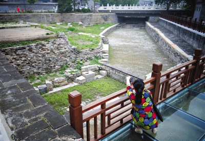 昨日,一位市民在参观大运河东不压桥遗产点。新京报记者 浦峰 摄