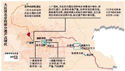 王玉伟:文物修缮和水质治理。外国专家来检查时提出过很多意见,比如遗产点周边建筑的颜色、风格、电线杆的飞线杂乱等,都提出要和遗产相配合。水质治理也很重要,目前通州、朝阳区已经开始进行截污工作了,希望能加大力度。