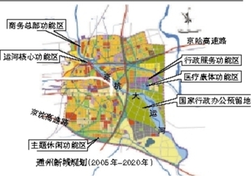 ●2009年12月,北京市委十届七次全会明确提出:“集中力量,聚焦通州,借助国际国内资源,尽快形成与首都发展相适应的现代化国际新城。”