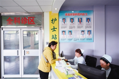 昨日,方庄社区卫生中心全科诊区,护士在为居民提供帮助。签约居民在该中心可享预约诊疗服务。新京报记者 王嘉宁 摄