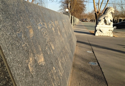 年初,大兴庆丰路6号,北京市新安劳教所门口,大理石上的名称已被去除,只剩下字痕。新京报资料图片 黄月 摄