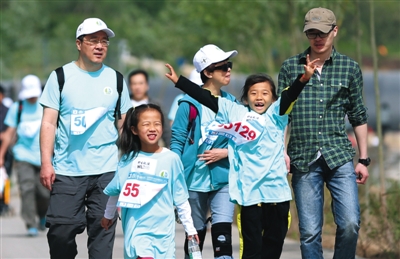 为鼓励孩子们参与徒步健身,大会今年首次把报名年龄放宽至6岁,因此有150个家庭参赛,绿色水岸路线也成为“最美家庭亲子徒步路线”。