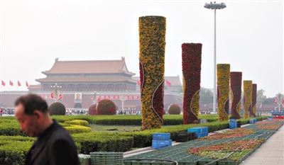 杨志华举例说,天安门广场“十一”主花坛已延续两年采用花篮造型,只是会在细节上有一些改动。