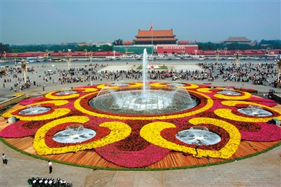 天安门广场从1986年国庆节开始摆花以来,到2013年已经经历了20多年的国庆摆花历史。