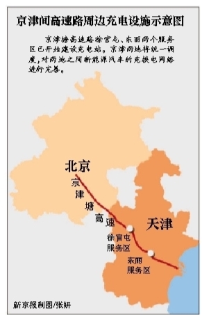 新京报讯 (记者温薷)记者近日从天津市科委获悉,今年,京津两地将协调规划建设双城间高速公路周边充电设施,届时,京津两地纯电动汽车将可“无障碍”通行。目前,京津塘高速徐官屯、东丽两个服务区已经开建充电站。