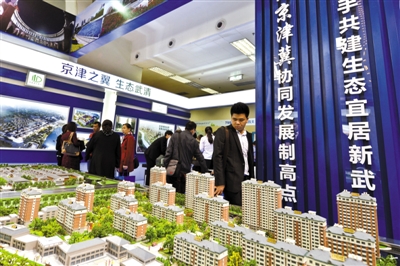 4月10日,北京春季房展在北京展览馆开幕,各房企围绕京津冀一体热点进行宣传。图/CFP