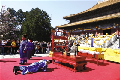 明十三陵长陵昨日举行“祭祀祈福大典”。“重现”明代皇家祭祀祈福仪式。 新京报记者 浦峰 摄