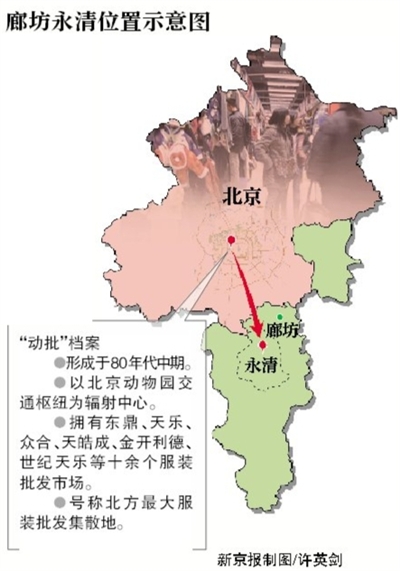 关于“动批”外迁的去向,目前,北京官方说法中,包括廊坊市的永清县和固安县以及保定的白沟等地都在考虑之中。