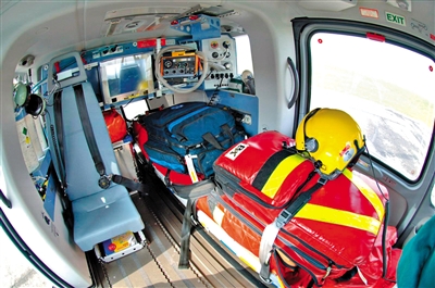 但空中救援势在必行。EC135直升机到京后,将进行专业的医疗急救改装,完成后就是一个标准的ICU。改装后,直升机上将配备固定的心电监护、呼吸机、除颤仪等先进的医疗急救设备,机上有固定的担架滑道,遇到群体突发事件时还可以装载两个担架,同时转送两名患者。