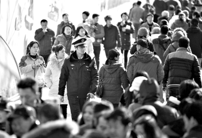 “我已经连续3年在地坛庙会执勤,没能在春节回家过年了”,杨怀广说,“我老家大连,今年兄弟几个都回家过年了,就差我。我爱人和孩子在年前回大连替我看望父母。我一直执勤,没法陪他们玩。”