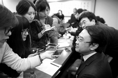 昨日,北京市两会政务咨询会上,北京市人口计生委主任刘志接受记者采访。新京报记者 侯少卿 摄