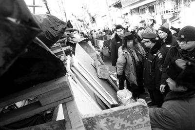 清理现场。走进东城区演乐胡同百余米,破旧家具、废弃生活用品、衣服等各种废弃物在胡同一侧堆积起一人多高,原本4、5米宽的道路被挤占了一多半。“破烂的主人王某,平常就有捡破烂爱好,但只捡不卖,也不自行清理。”朝阳门街道办相关人士介绍。近日,东城城管协同街道、派出所等单位,动用了四五辆环卫三轮车,对堆积物进行了清理。通讯员 刘业超 刘勋 新京报记者 饶沛 摄
