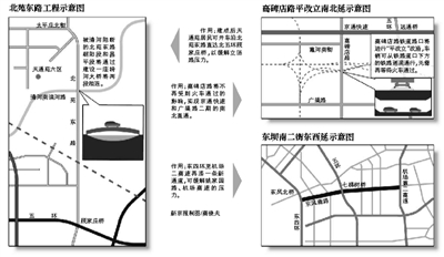 昨日,朝阳区市政市容委负责人表示,为加快道路建设,今年朝阳区对主干路拆迁建设工作体制进行调整,采取“一路一策”的原则。东坝南二街东西延、高碑店路平改立南北延已批复立项,今年将启动拆迁。