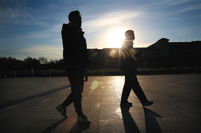 4月1日,天安门广场,环食药旅总队旅游支队民警正搜索“黑一日游”从事者。